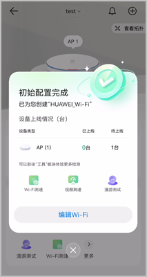 WIFI管理:您可以在AP上创建Wi-Fi,创建完成后即可连接此Wi-Fi接入网络。