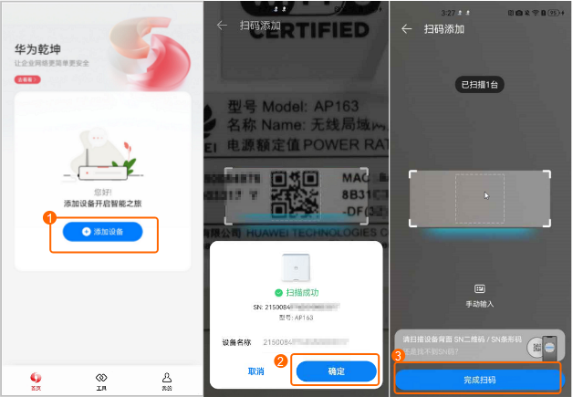如果扫描后未能成功添加设备,可以使用手动输入的方式添加设备。