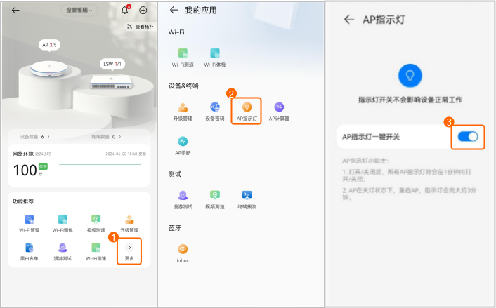 AP指示灯:打开或者关闭AP指示灯,通过打开或者关闭AP指示灯可以快速找到AP所在的位置 。