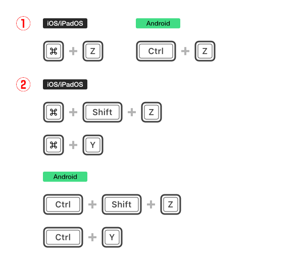 可以通过用两根手指点击画布来撤消上一个操作。以前撤消的动作可以通过用三根手指点击画布来重做。