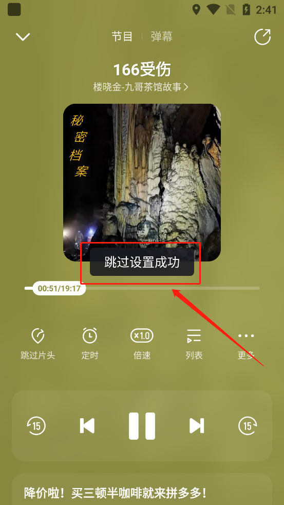 4、拖动到准确位置后确认,确认后会发现,再次播放的时候就可以跳过设定好的部分了。