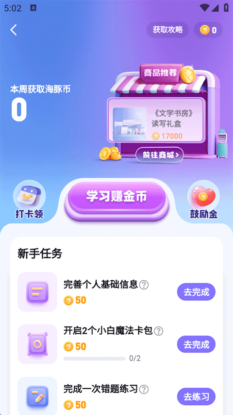 3、通过完成学习任务来赚取海豚币可以用来兑换周边以及其他学习礼盒,同时这也是您学习成就的最好证明;