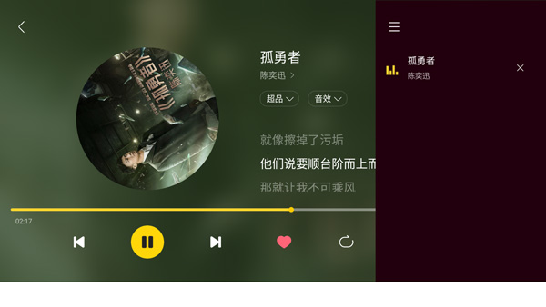 在播放界面,可显示词图、歌词,与其他单曲页面不一样的是,酷我音乐可以通过右上端最靠右的按钮来查找“相似歌曲”。