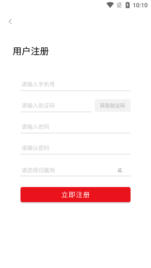 2、输入自己的手机号、验证码、密码,选择归属地,点击立即注册;