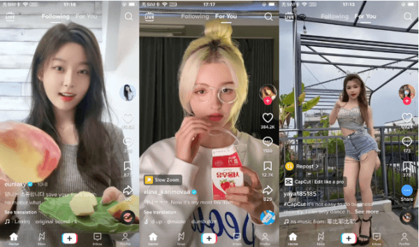 其实逛过国外的tiktok之后,其实不得不说中国人民是最会玩这样的短视频的民族,花样最多,种类也最多。不管是学习类视频如学习PPT,如风景类视频,如美食类视频,以及占据主力的美女帅哥搞笑视频及萌宠。用户人群其实不仅仅是单纯的年轻人,更多年龄层都被席卷进来了。