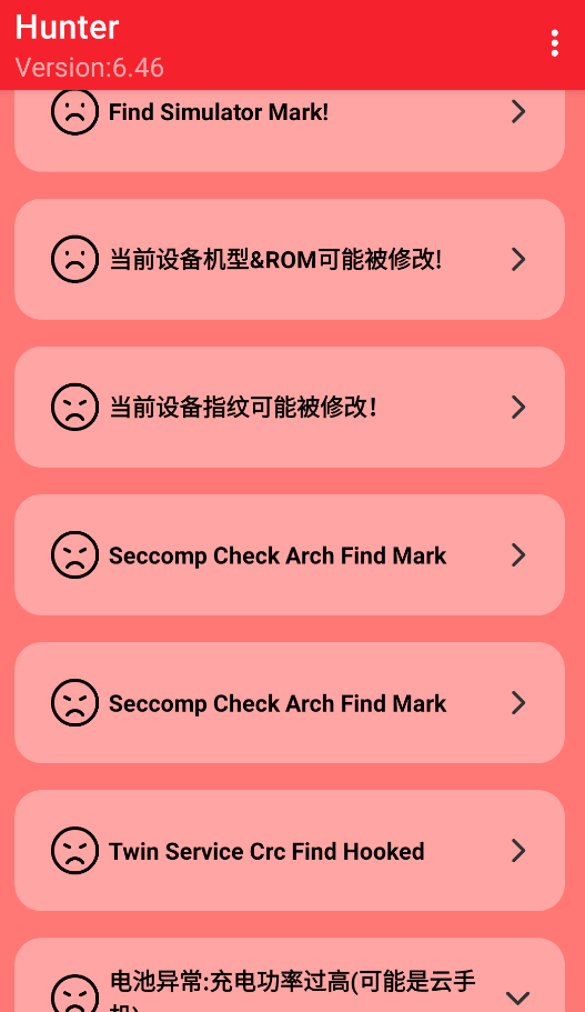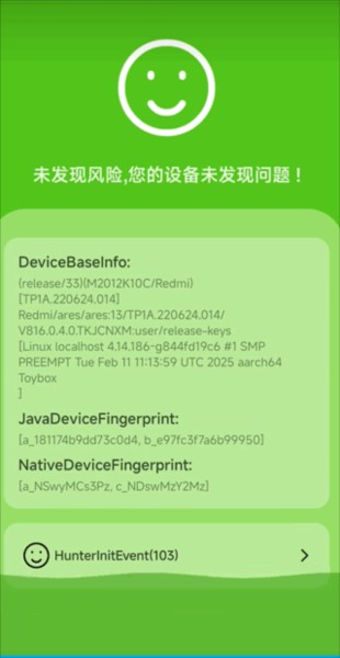 Hunter检测工具主要用于扫描设备是否具备Root权限、是否安装Magisk/Xposed框架、是否运行于模拟器环境,或检测设备指纹是否异常。