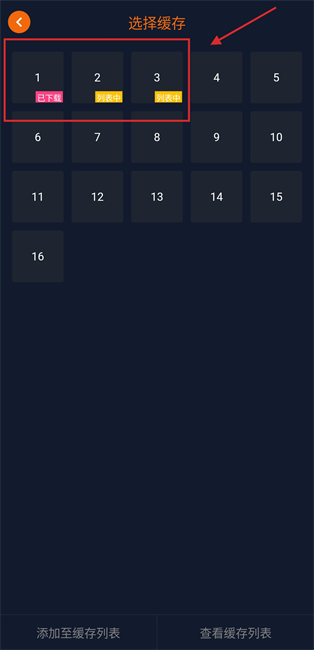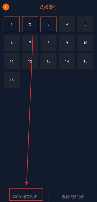 2.选择需要缓存的集数后点击左下角的【添加至缓存列表】