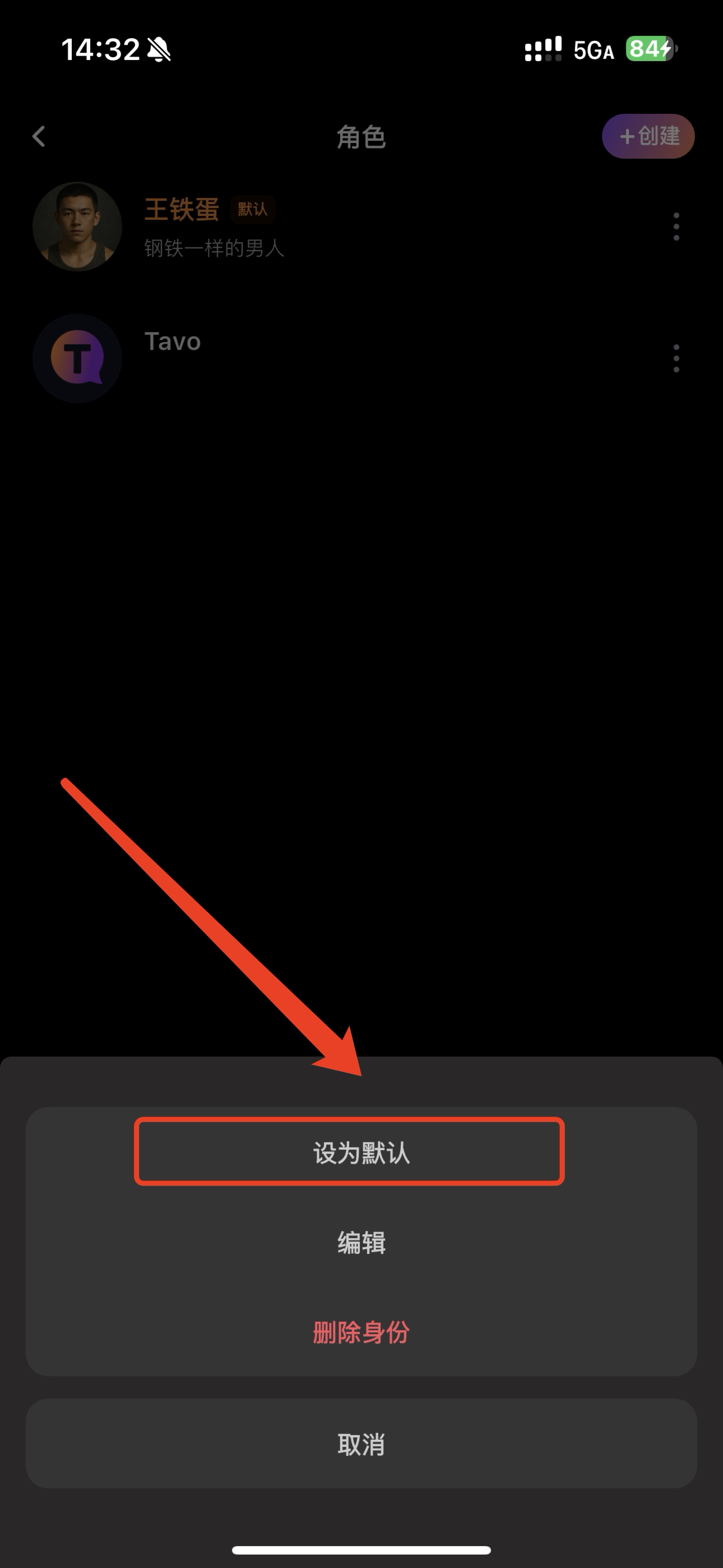 点击“创建”,即可创建身份。(注:身份是你在聊天时,对自己的身份设定。)