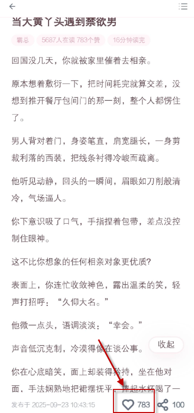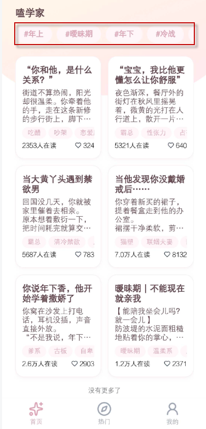 1、下载安装并打开磕学家后,在首页中有众多短篇小说推荐。
