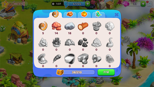 5、你可以在背包内查看已收集的各种材料数量,还能对材料进行升级哦。