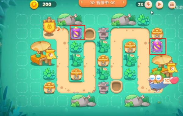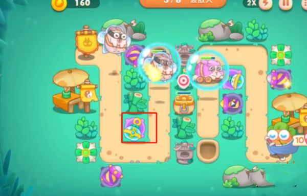 5、在减速道具周围,需要放上尽可能多的攻击道具,不然在怪物减速期,没有攻击它。