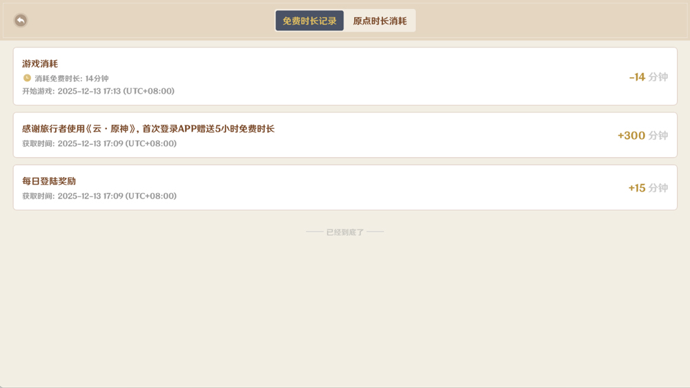 每日首次登录游戏可领取15分钟免费时长,刷新时间为每日凌晨4点。累计上限为600分钟,达到后无法继续累积。