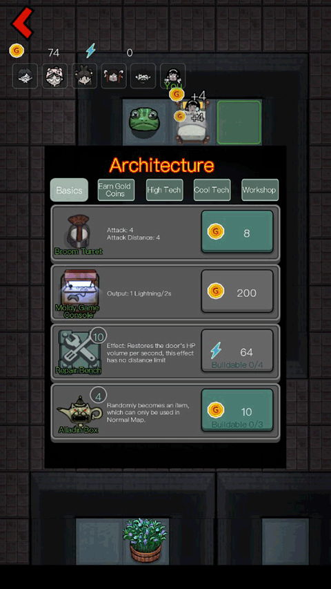 1.作为幸存者,玩家需要拿起道具和建造技术快速获得金币和钻石来建造。或者升级防御塔,打败鬼魂,逃离鬼屋。