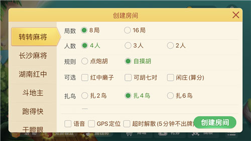 2、在创建房间界面,我们可以看到多种玩法,选择你想要玩的玩法,再点击右下角的创建房间;