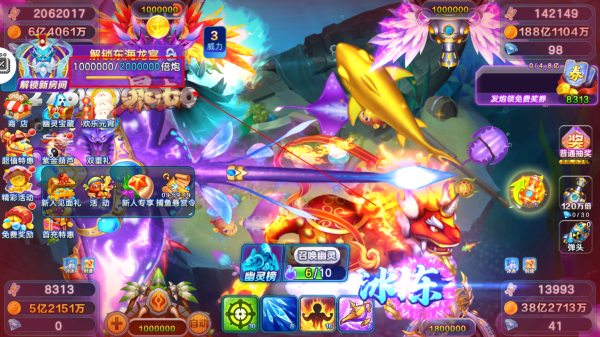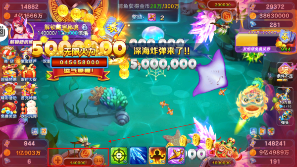 4、捕鱼的时候注意观察渔场的情况,必要的时候可以使用道具辅助打boss,补刀更容易赢。