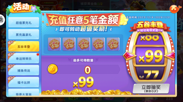 5、每天通过抽奖、转盘还可以获得金币,除了可以用于捕鱼以外还可以。