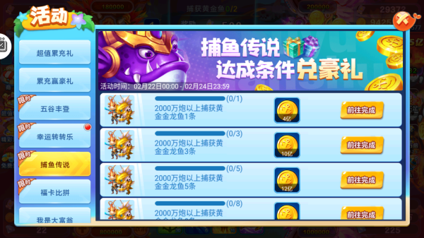4、捕鱼进程完成到一定数额的时候,可以解锁新的房间。