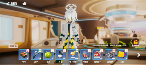 橘子汽水,宠物百科,指南针,彩纸,骑士折纸,玫瑰酥,蔓越莓曲奇,棉花糖,蜂蜜茶,麻婆豆腐,磨牙饼干,自制贺卡,大会员,巧克力,大厅指南,火焰玫瑰,漫画书,哈密瓜,柠檬,新鲜蔬菜,芒果,苦瓜奶茶,炸薯条,西冷牛排,甜甜圈,烤串,棒棒糖,海鲜套餐,牛奶,爱心便当。