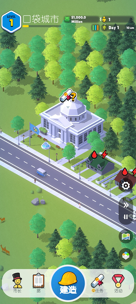 在游戏中发挥你的创意打造繁华大城市的手游,口袋城市2手游(Pocket City2)是Codebrew Games官方打造的正版续作,游戏拥有丰富的系统和玩法,在游戏中需要不断的建造居民区,公路和各种建筑物,让你的市民过上幸福的生活。