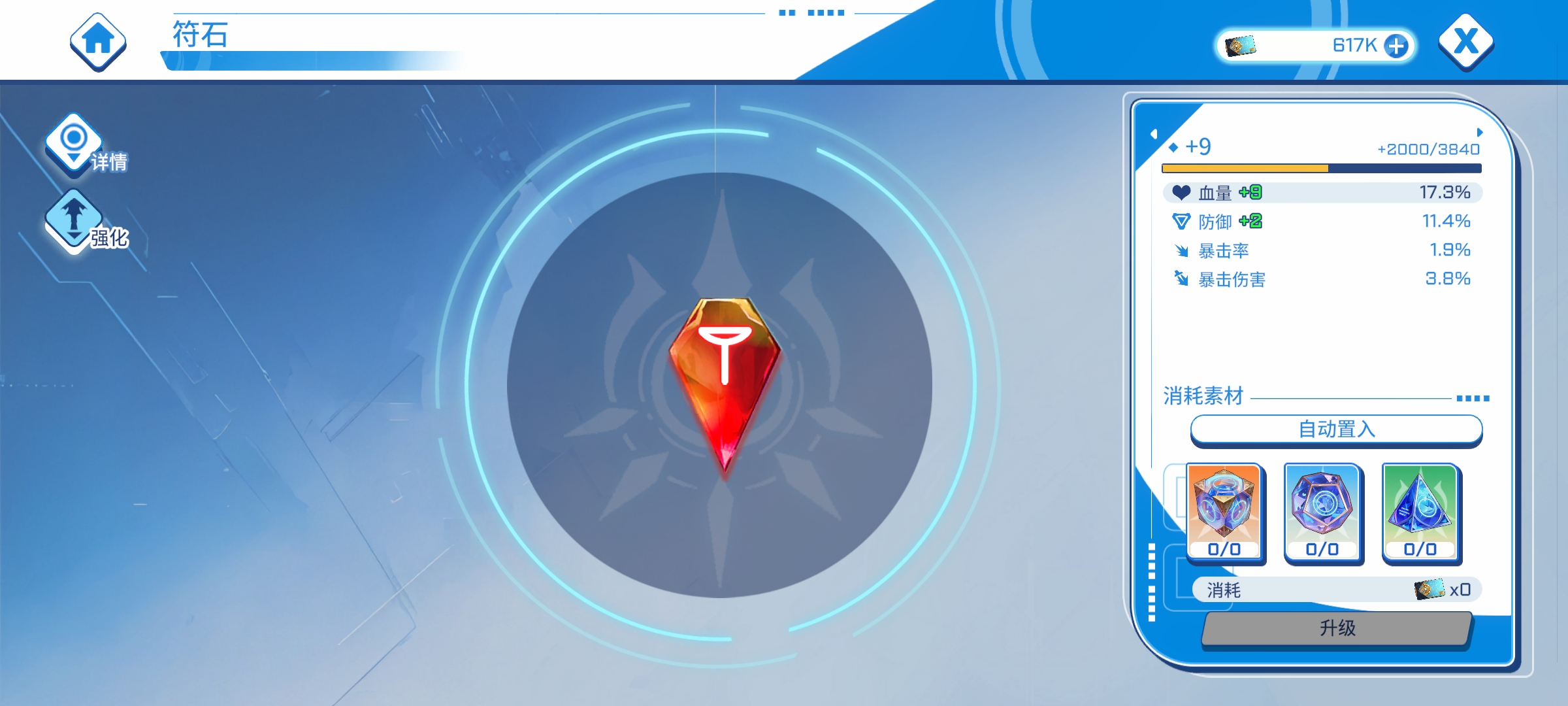 体力拿去刷 符文经验本 优先构建盾和输出的+12 盾卡攻击位可以不强化,输出位防御生命可以不强化