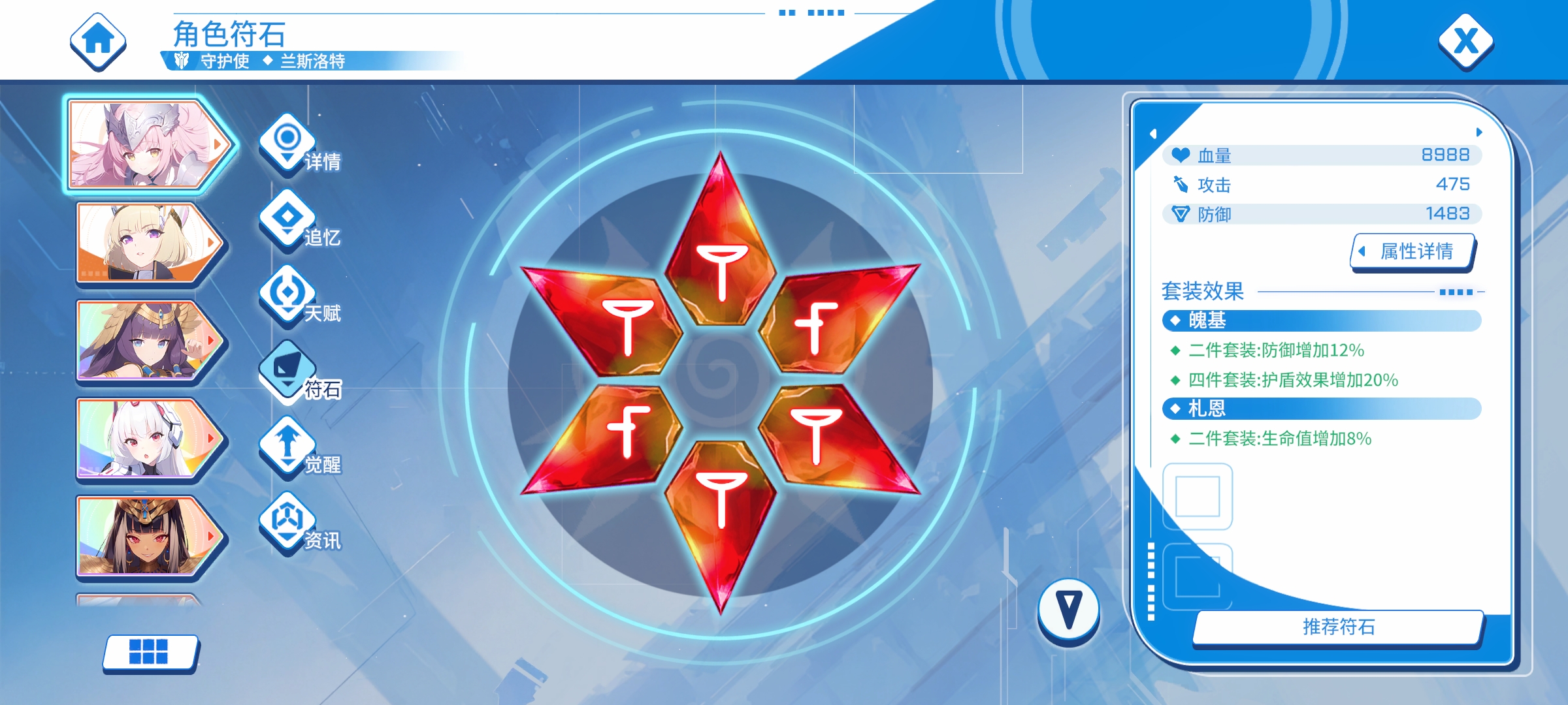 支援推荐所有位置带攻击力。套装可以有两种选择,可以选择4治疗套开场增加一个豆,也可以选支援套增加主C输出,1号生命3号防御位置可以不强化