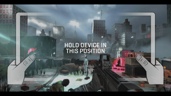 3、双手握手机两侧,一遍移动,一遍掌握你的枪口射击。