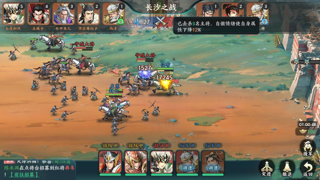 5.斩杀敌将会叠加连斩debuff,降低百分比的属性。