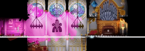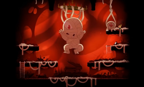 第四大关需要玩家不断上下跳跃到达更高的高度,boss则是一个上锁的钟楼,需要玩家跳上高处插钥匙击败。