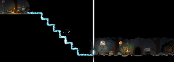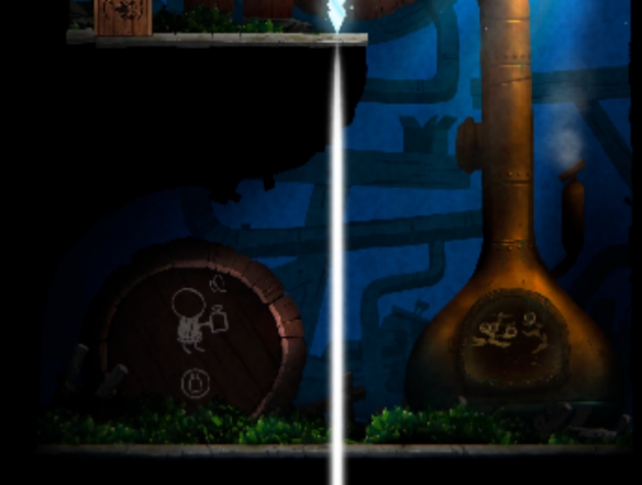 酒窖的大门已被上锁,但我们的主角有着利用镜子的神奇能力,他可以利用镜子生出自己的倒影,并且随意交换自己和倒影的位置从而一路前进。
