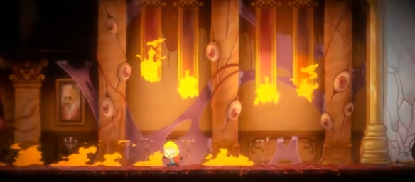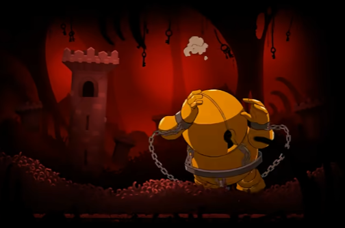 在火焰中国王并没有死去,他全身裹满绷带活了下来,他变成了丑陋的样子,他无法接受现在的自己,于是用油漆将所有有关自己脸的画都用油漆泼了一遍,用锤子砸掉了所有的镜子,锁上了城堡所有的门从此闭门不出,酗酒度日,而这便对应了游戏的章节boss们。