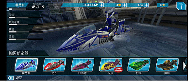 全新水上摩托艇:收集9艘全新的水力喷射艇,升级性能和颜色,提升竞争力。