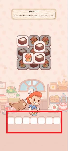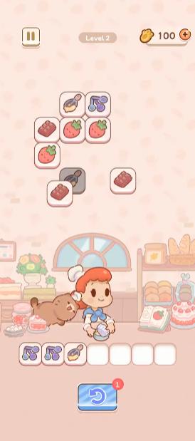 点击堆叠三个相同食材即可消除,制作甜点、升级食谱。