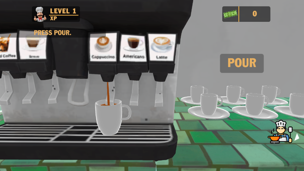1、经营店铺:玩家化身为咖啡馆老板,从接单开始,需根据顾客需求制作各类咖啡、甜点及三明治等食品,并及时提供服务,让顾客满意而归。