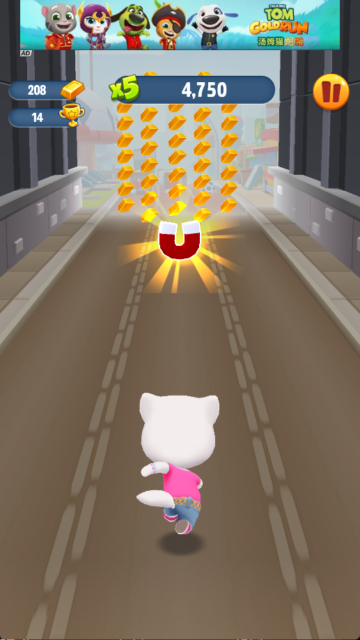 磁铁+冲刺道具同时使用,能瞬间清空一条路的金币+障碍物,分数暴涨!