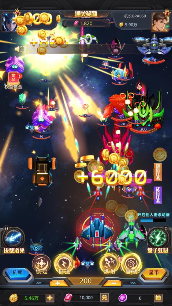 3、炫酷的游戏技能特效设计,感受爽快的弹幕射击冒险。
