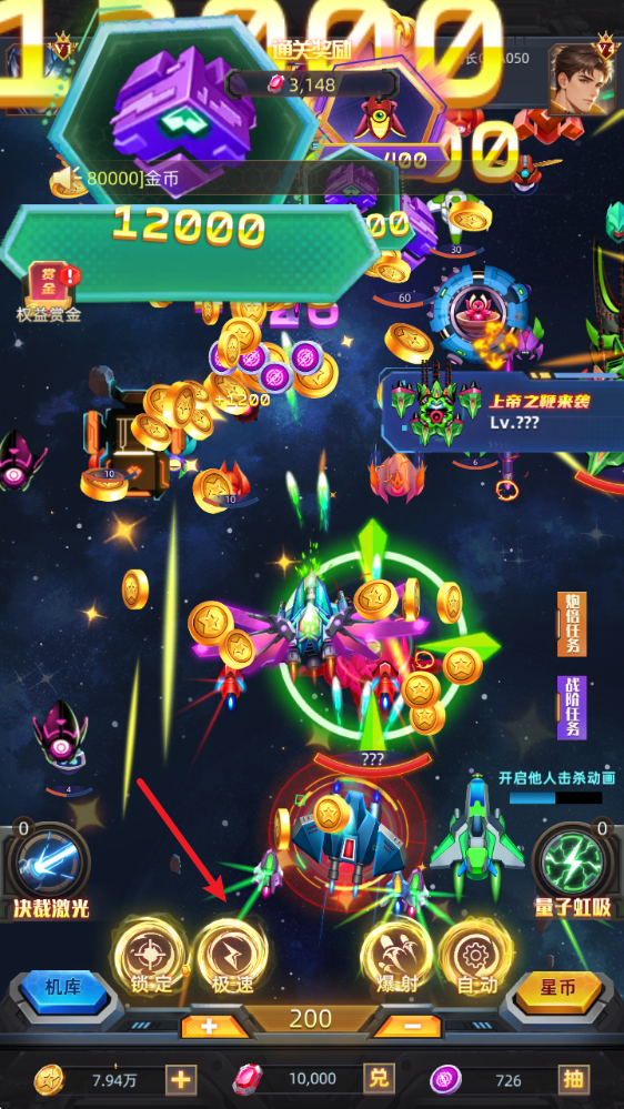 2、下方还可以开启极速、狂暴、自动等功能人,让你拥有更强的火力。