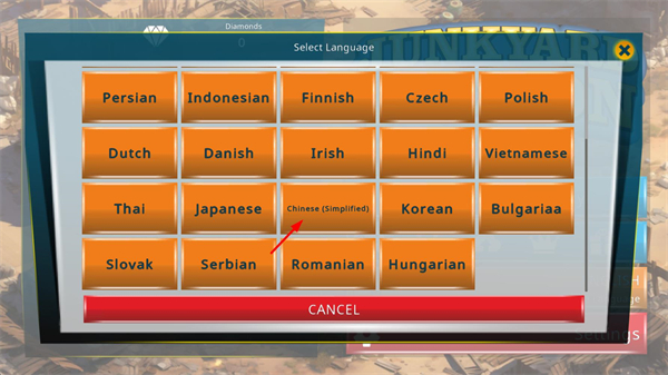 2、然后选择Chinese选项就可以将游戏设置成中文版。