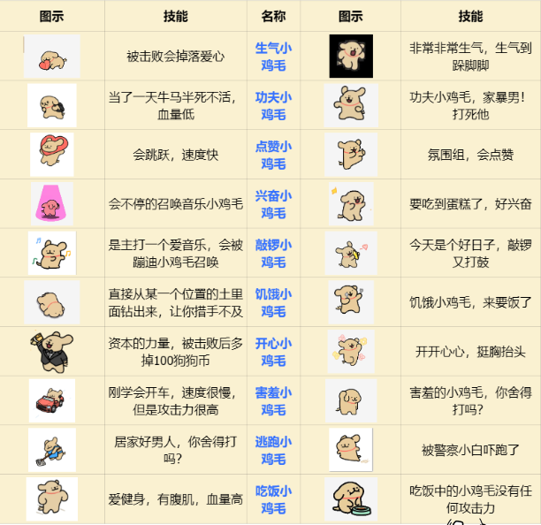 2.击败小鸡毛掉落货币,用于解锁新角色或升级技能。