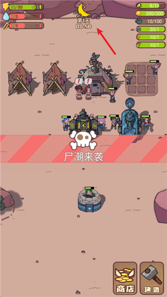 3、晚上会有不断来袭的尸潮,玩家需要合理的去布置防线,并指派居民来驻守,建造起固若金汤的防御。