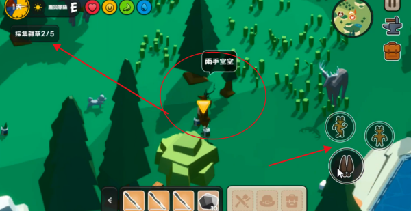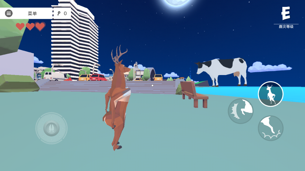 4、进入游戏后,左方控制鹿的移动,右边是鹿的一些技能;