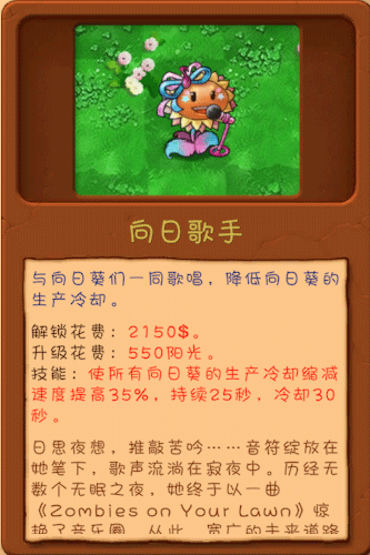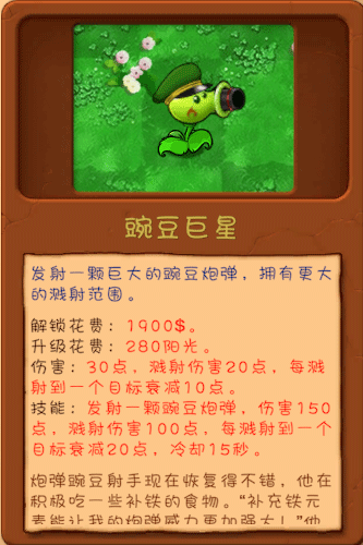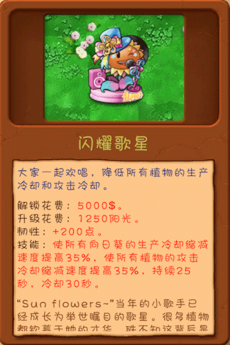 5、在关卡里消耗阳光可以种下植物,每个植物消耗的阳光是不同的;