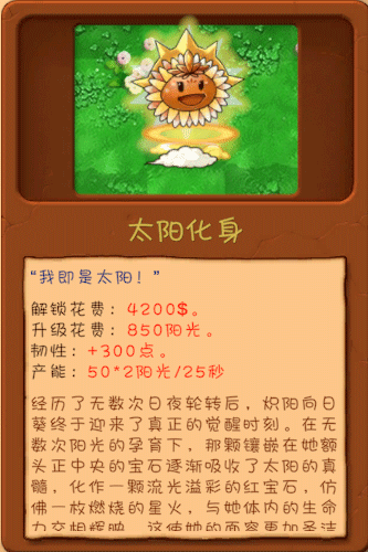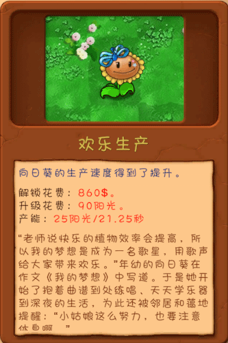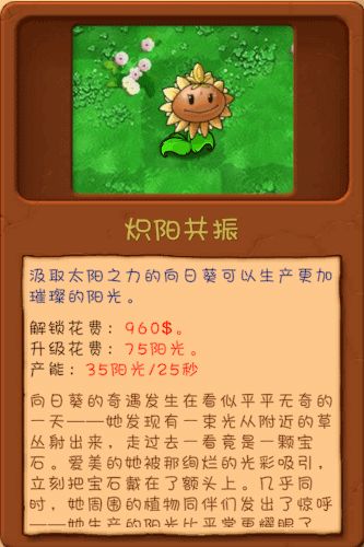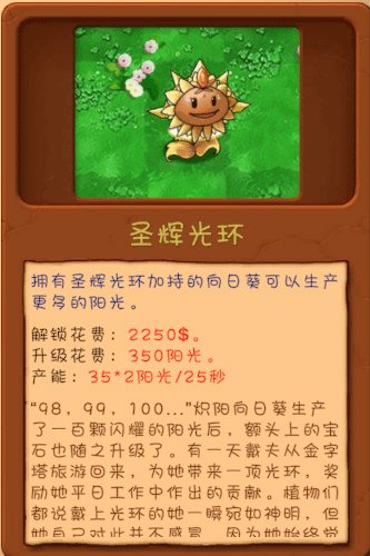 6、种下植物后点击植物可以对其进行升级,每次升级需要先用金币解锁,然后再用阳光进行升级;