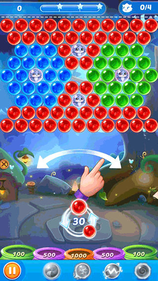 从下方发射不同颜色的球球,只要两个相同的球球靠近一起就可以消失,一定要打准,不要乱打