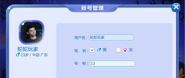 可查看玩家的用户名、性别、年龄和所在地区;