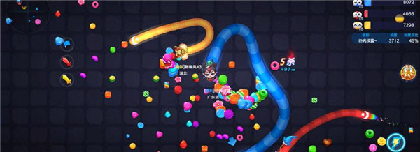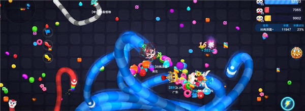 如果你是新手,可以稳妥一点,吃掉地上随机生成的免费的糖果,正所谓闷声发大财,前期积累长度就靠这个了。