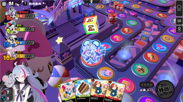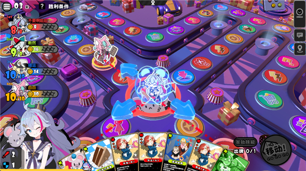 4、游戏采用多人联机派对玩法,玩家可通过掷骰子来让角色前进,遭遇对手后,玩家可发动攻击;