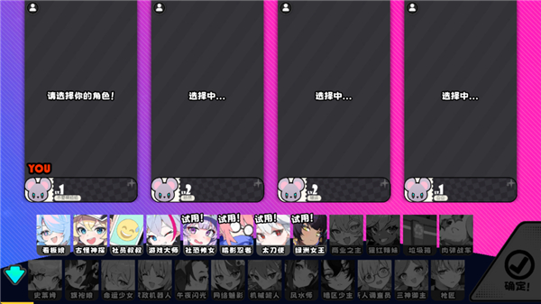 准备阶段会让各位进行角色选择,待所有玩家都选好后便会一起进入游戏。