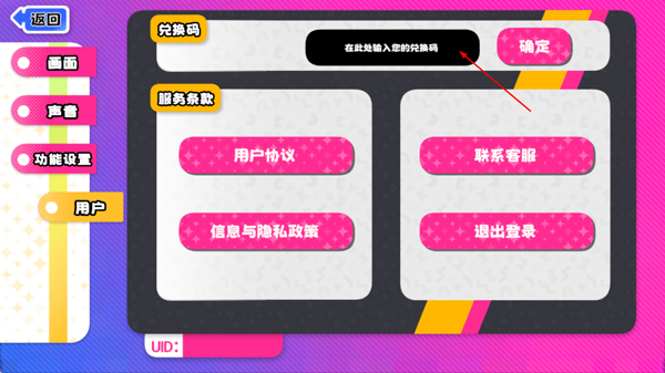 2、接着点击用户,然后在兑换框输入兑换码领取即可。