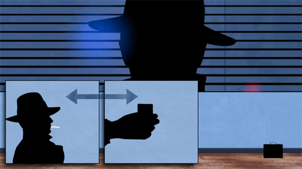 如下图所示调转图片位置,当警察开枪射击的时候,主人公飞身一跃,桌子侧翻在地挡住了子弹,主人公便可以趁此机会跳窗逃走!正字啊看小编此篇致命框架攻略的你是不是也被主人公矫健的身姿所折服!