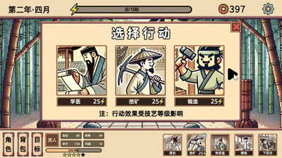 ◆ 自由江湖:开局选天赋(剑客/医师/商人),采药、打铁、撩NPC都能涨修为